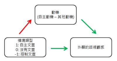 用白話來說,就是閱讀自主文宣會提升動機,但閱讀控文宣時動機則會下降,但是這個關係是受到研究者所採用的分析方式而造成的影響(有點複雜也不方便在這裡解釋,總之要提醒大家這件事情);再來就是這個動機越高歧視的觀感是越低的。另外值得一提的是雖然閱讀的文宣類型和歧視觀感有個負相關,但這個主要是由於閱讀控制文宣的那一組的歧視觀感明顯提升所造成的,這個效果會透過動機調節的成分較小。他們另外做了一個實驗,這個實驗有採用一個隱示的指標來推測實驗參與者是否會歧視黑人,結果上大致與第一個實驗類似,所以就不多作介紹了。
