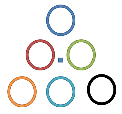 但陸續有研究發現在一些情境下,威脅性刺激的處理並不會叫非威脅性的刺激有效率,例如在注意力資源缺乏、刺激的語意層次尚未被處理等等的情境(參考Luiz Pessoa的專文或是筆者和Patrik Vuilleumier的文章)。這篇研究則是想要檢驗一個人的注意力廣度是否也會調節對於威脅性刺激的優先處理歷程,所謂注意力廣度的定義有很多種,有時候是測量一個人一眼望去可以看到多少範圍的刺激,看到越大範圍的就表示注意力廣度越廣;在這個研究中採用的指標是注意力專注的面向是大面積或是小面積的,請參考下圖,注意力廣度大的操弄是要求實驗參與者要注意圓圈所排成的形狀是往上或往下(在圖中的就是往上的),注意力廣度小的操弄就是要求實驗參與者判斷在中央的圖形是方形或是菱形(在圖中的是方形)。