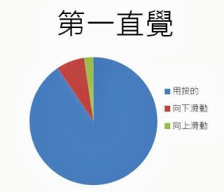 如果又根據使用者的背景去區分,在27位Andorid使用者中,只有1位的第一直覺是按對的。傳統手機的使用者,全軍覆沒。iOS使用者又可分為是否有更新到iOS7的介面,尚未更新的也是全軍覆沒,更新的則有50%的第一直覺是對的。