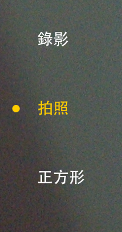 在這個實驗中,我們使用iPAD,並要求使用者要用相機程式中的錄影功能。如同大家在上圖所看到的,相機程式中,有三個選項:錄影、拍照、正方形,其中拍照功能是放在中央的選項(紅色框框所標記的區域)。為了讓大家看清楚,特別把這個區域放大