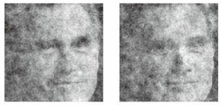 有研究者透過人們對於政治人物不同的觀感,來檢視究竟是否情人眼裡出西施,以及相關的議題。在2012美國大選的前後,他們找了實驗參與者來進行研究,第一個階段的實驗參與者大學生,他們每次會看到兩張共和黨總統候選人羅姆尼的照片,這兩張照片是相同的底圖,但是加上了不同的雜訊在上方(如下圖),他們必須從兩張圖中選一張他們比較接近他們心目中的羅姆尼。